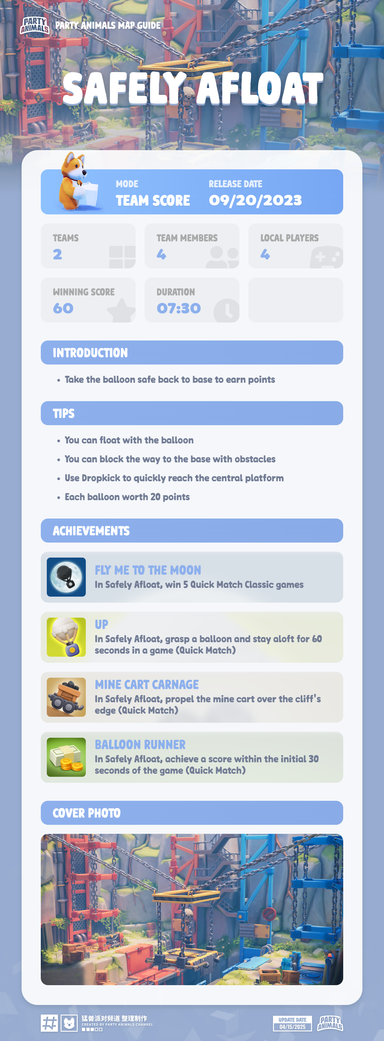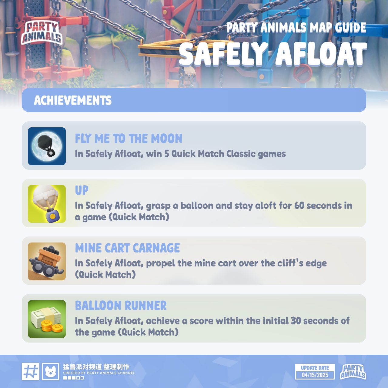 - In Safely Afloat, grasp a balloon and stay aloft for 60 seconds in a game (Quick Match)