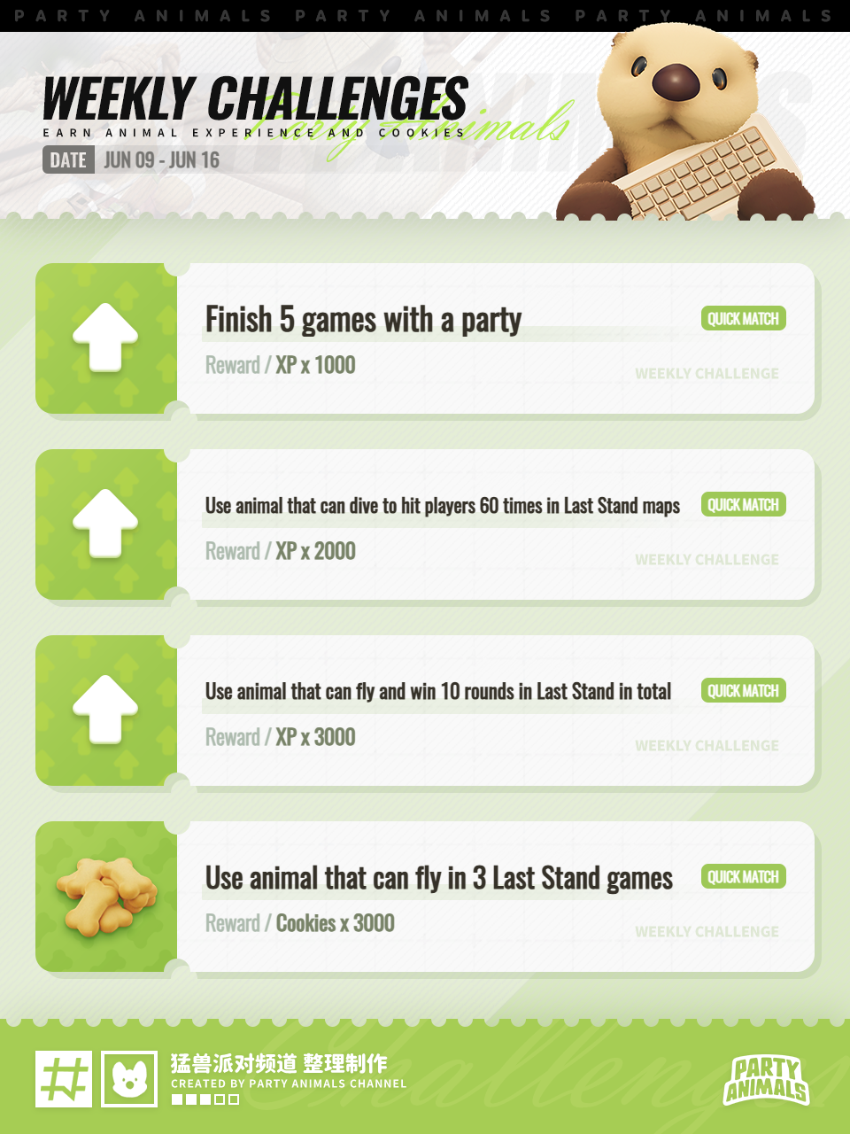Complete weekly challenges to earn xp and cookies