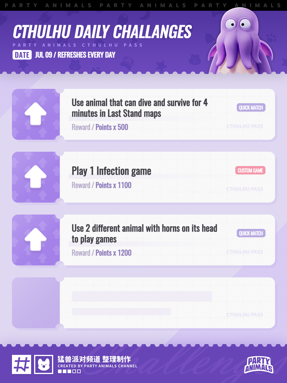 The brand-new free "Cthulhu Pass" is now live in Party Animals! Complete challenges to level up your Pass and unlock cthulhu-themed outfits and more!