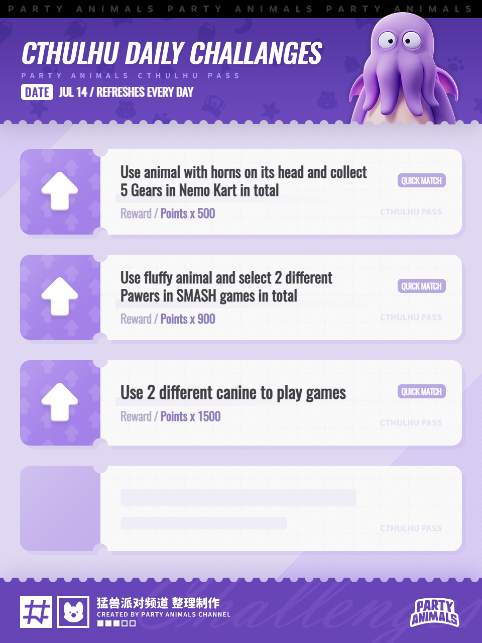 The brand-new free "Cthulhu Pass" is now live in Party Animals! Complete challenges to level up your Pass and unlock cthulhu-themed outfits and more!