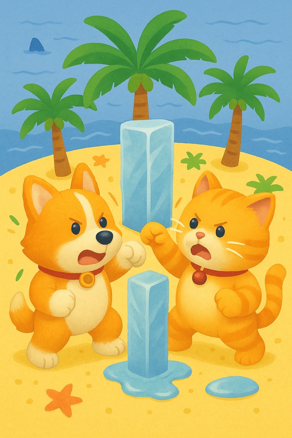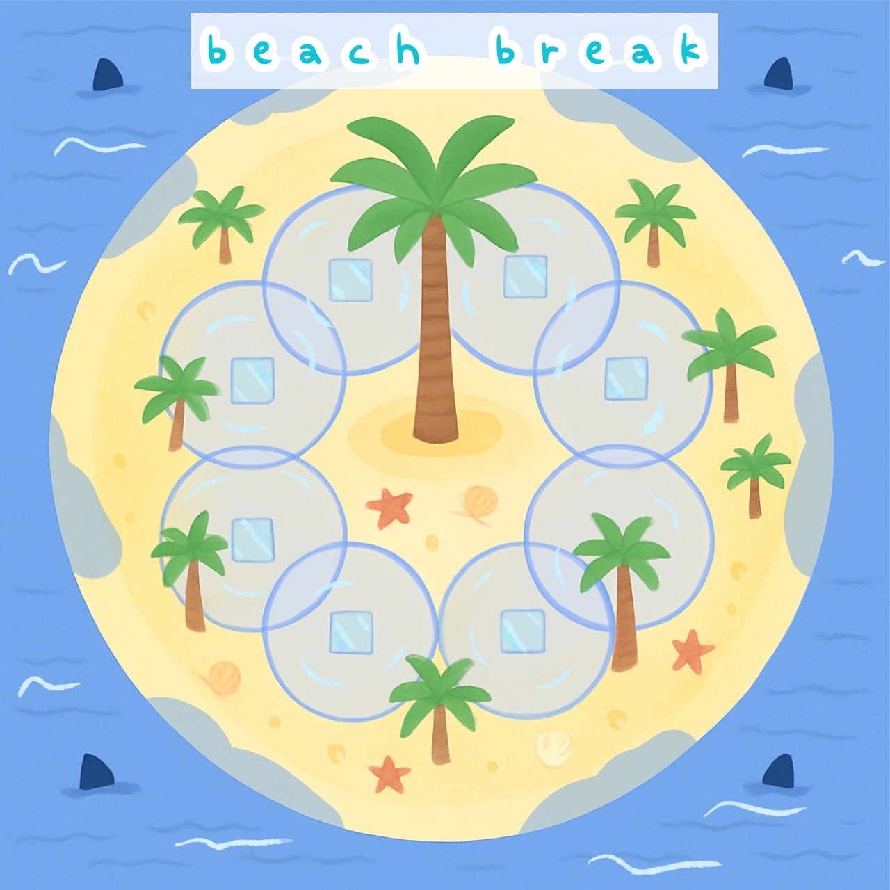 The stage is themed around sand and sea, with a play on words like ice break and vacation break.
