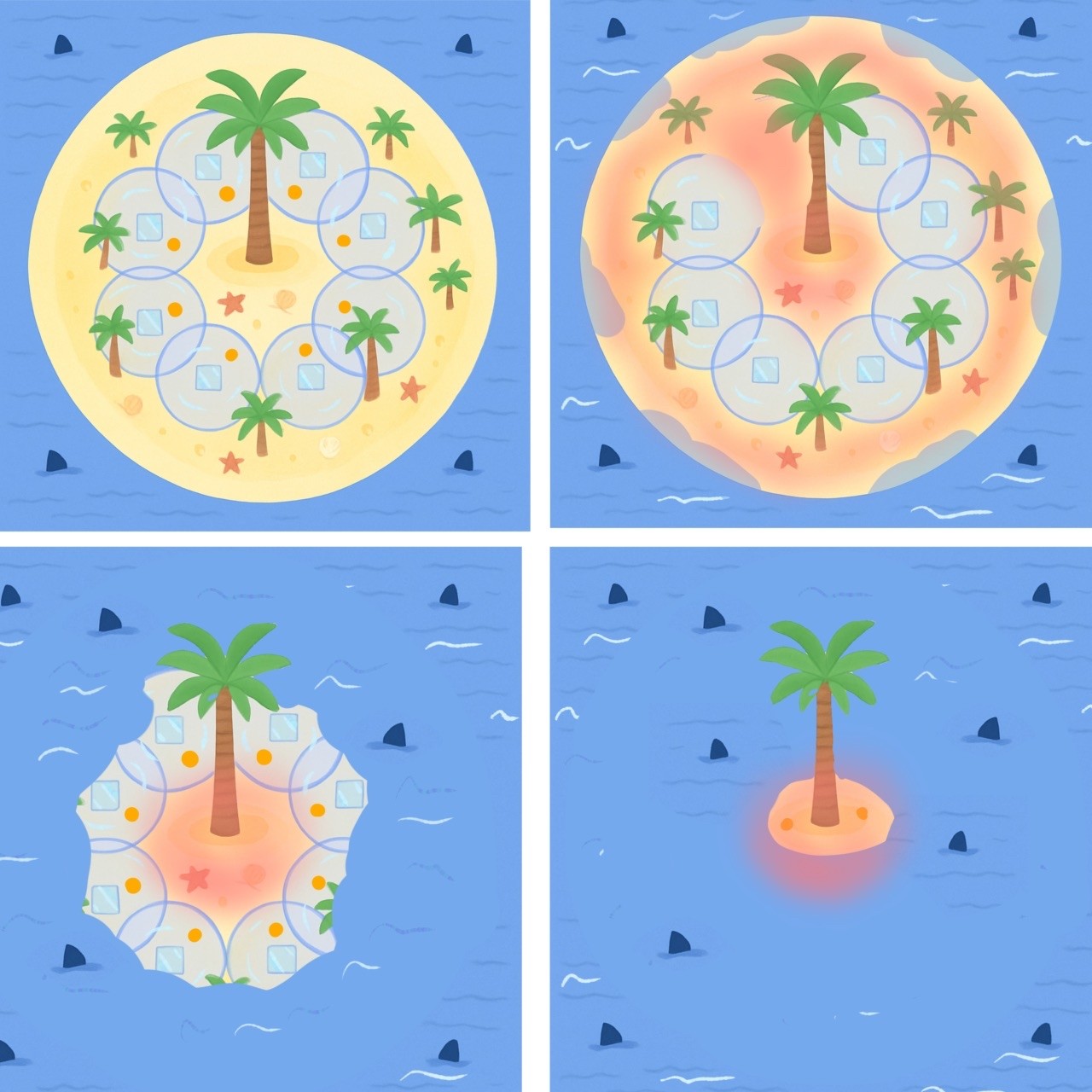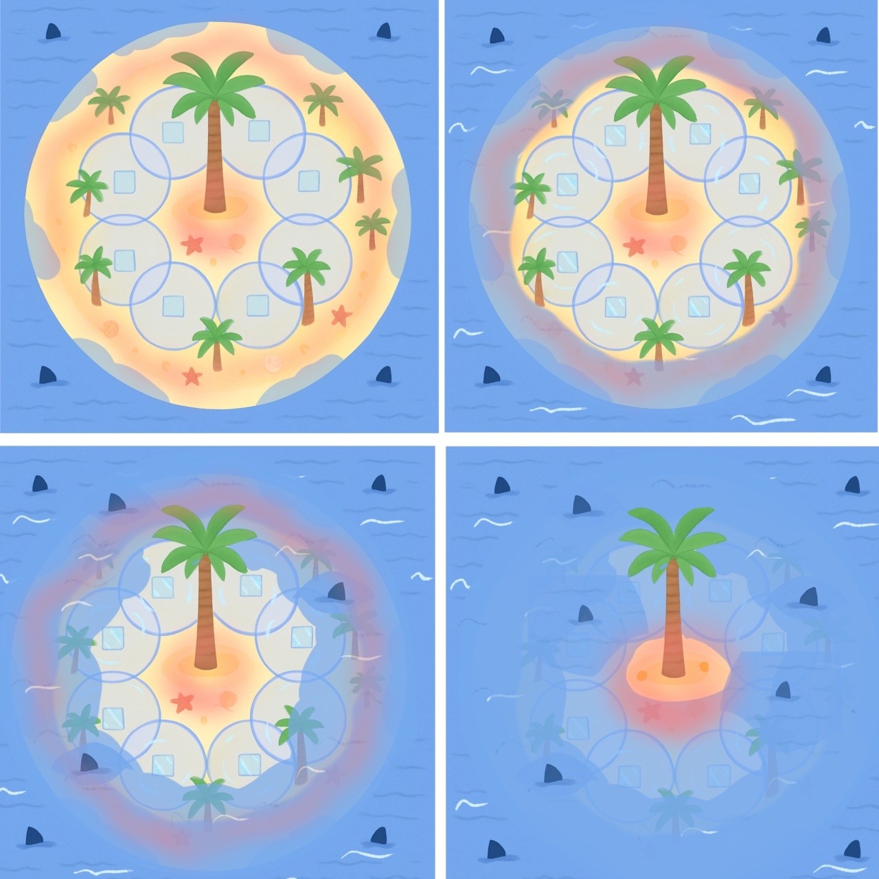 Mid-game, the area shrinks and fights break out near the last ice or in the center.