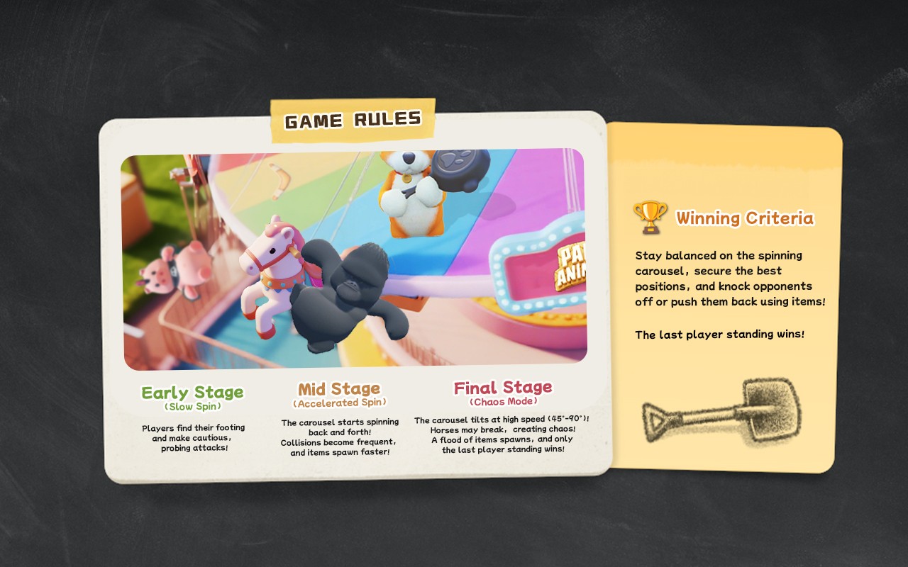 🎁 Go wild with items — giant hammers, banana peels, and more to stir up chaos!