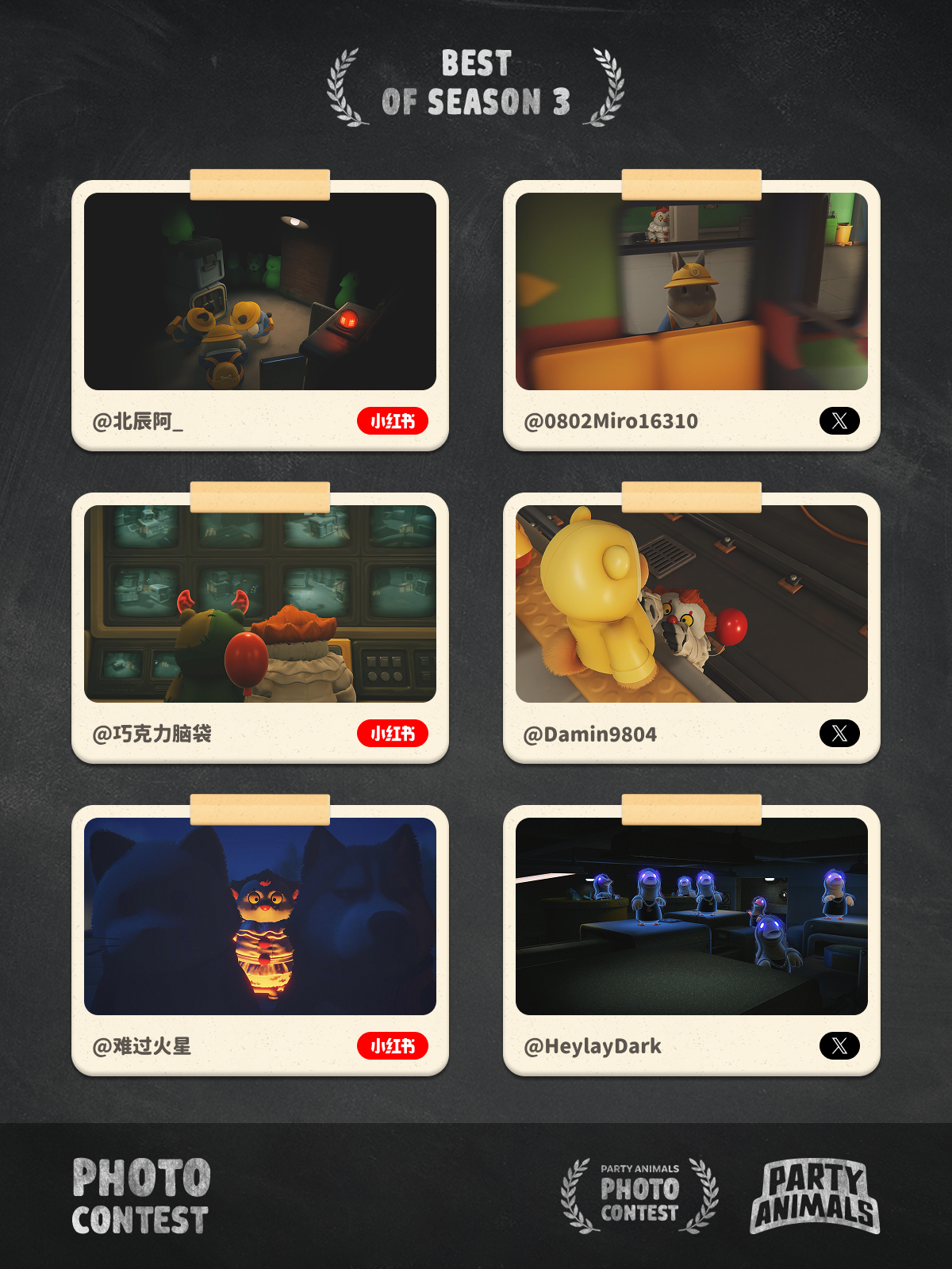 🎉 Congrats to the 6 winners whose submissions stood out and made it into the "Seasonal Best" for Season 3 of the Party Animals Photo Contest! Each of you will receive an official merch gift box & an exclusive custom figurine!