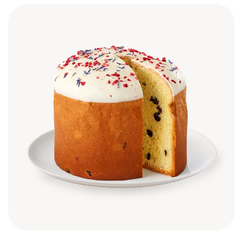 looks great, but too sweet for me. i couldnt order panettone, because the delivery service was busy, but i also bought another kulich for myself. i cant show it to you, because i left it under the sun and it melted. it looks gross now, but tastes good. this is how it should look ideally: