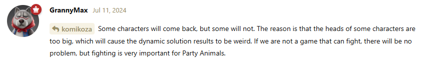 I'm having tons of fun with Party Animals and I want to make more content for the game pretty soon. I just wonder as well - what happened to this cool guy? Is he still planned to come out or got he scrapped? Is there any offical information about that? ty