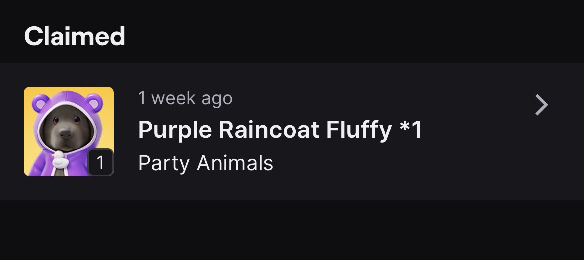 g0meezie I claimed my drop 10 or so days ago and I still haven’t got it my twitch is connected to party animals and everything what do i do?