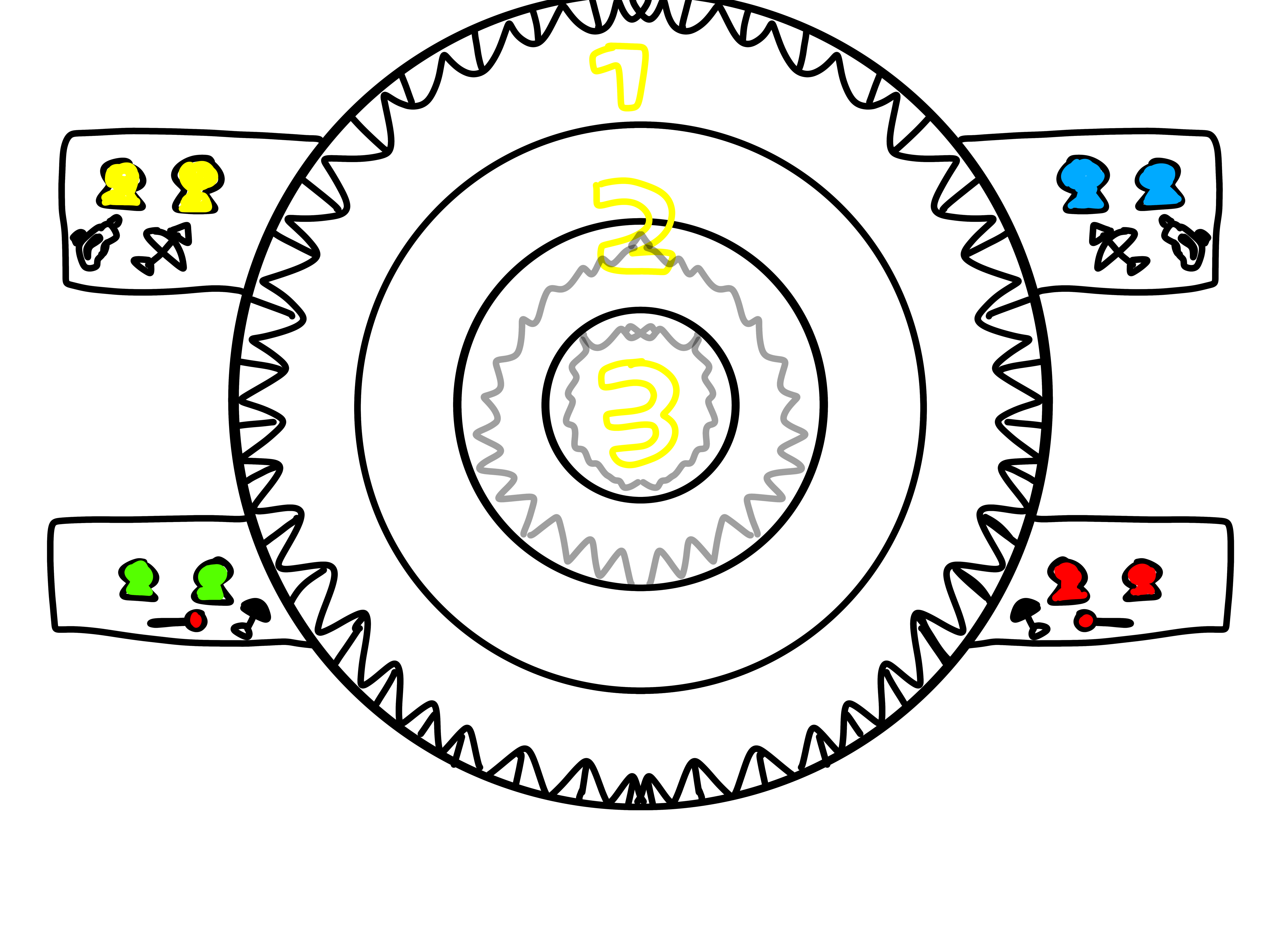 The inner border of this map is lined with spikes, which when thrown or hit, inflict minor knockback and reduce the player's health. Additionally, this map is divided into floors, and the player is on the first floor when the game starts. When there are four players left alive, the first floor will collapse and the players will be left on the second floor. When only the last two players remain, the third floor opens, and so on.